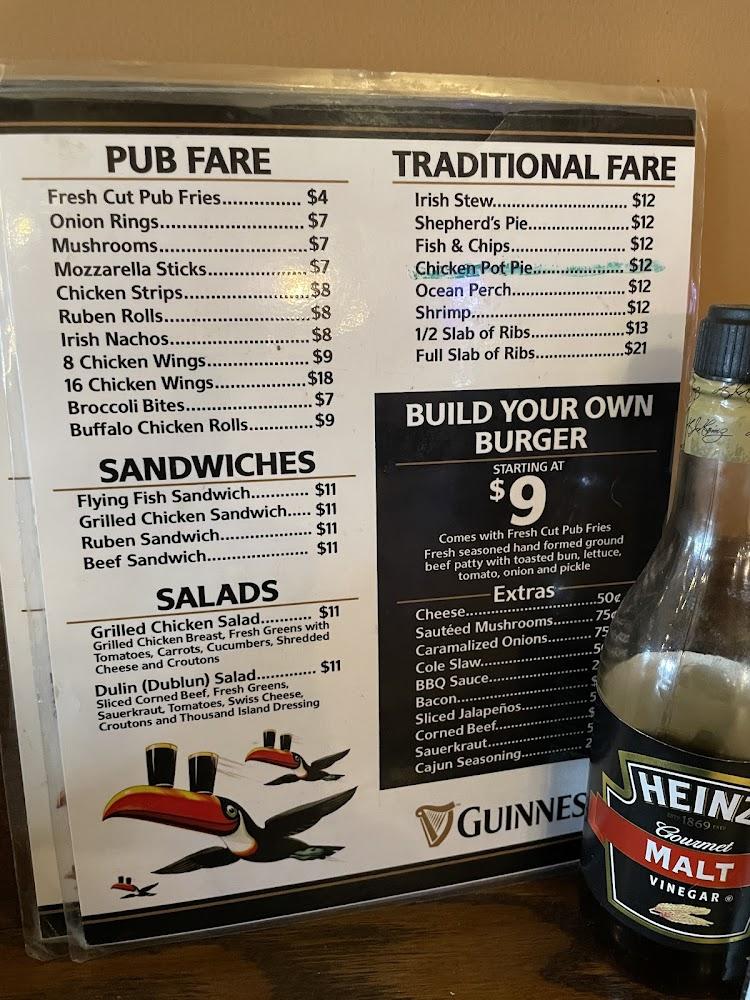 Traditional dishes like shepherd's pie and Irish stew bring a taste of Ireland to Indiana. For lighter meals, try the grilled chicken salad or hearty fish & chips.